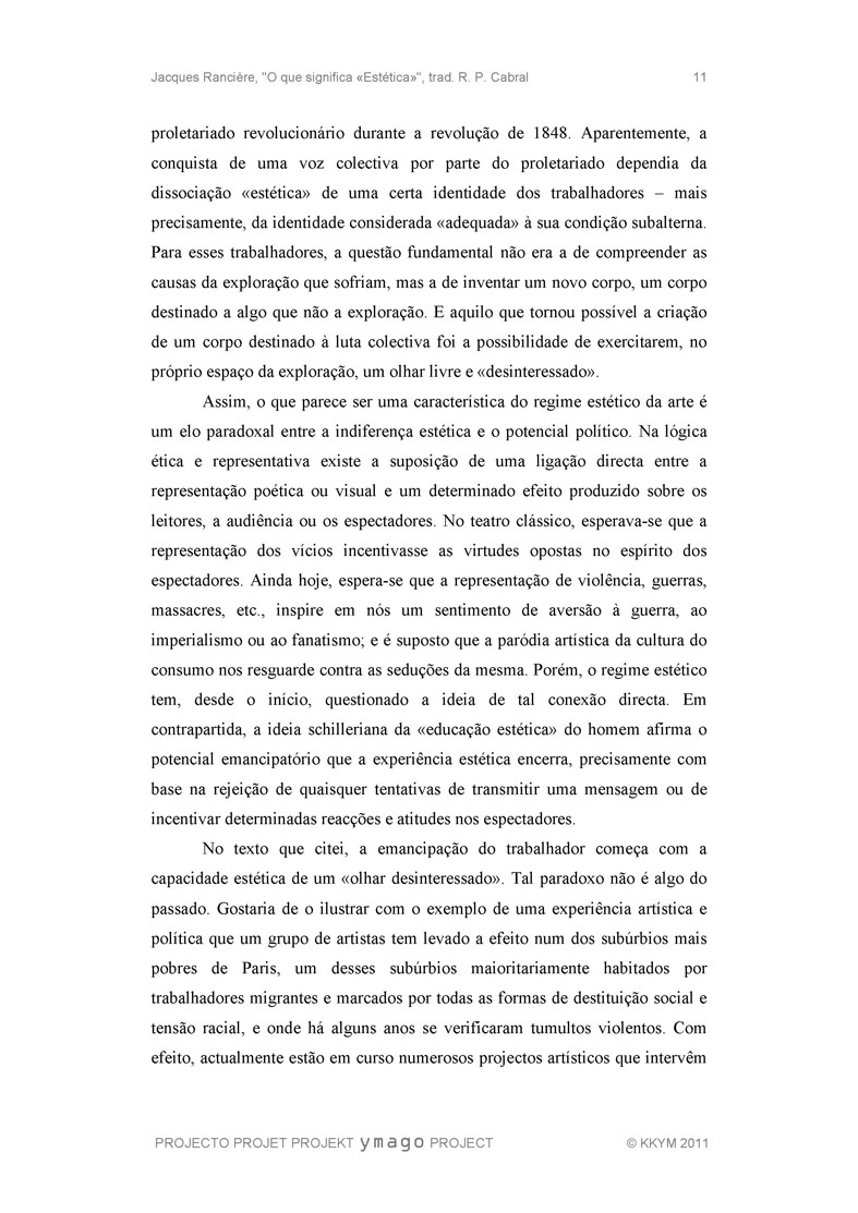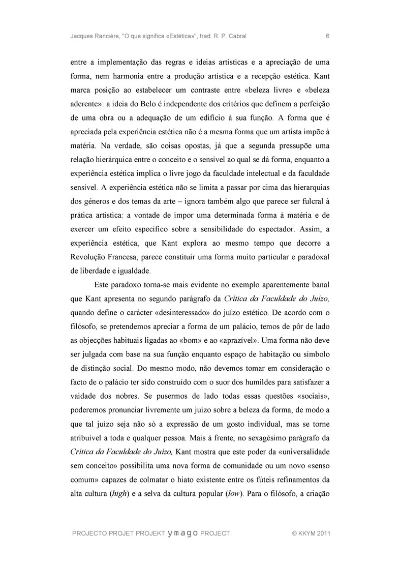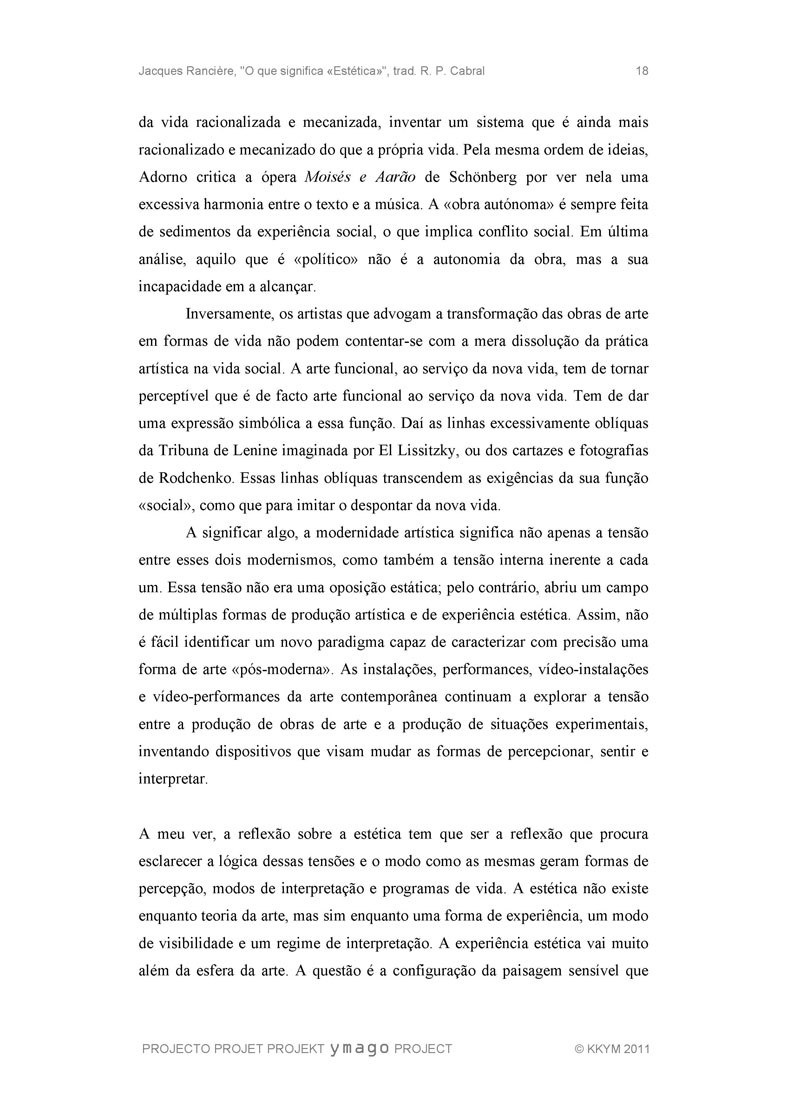 Jacques RANCIÈRE, "O que significa «Estética»"